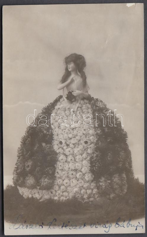 Leírás: 1931 Erdély, Csíkszereda, László Pál kertészetének virág bábuja, reklám fotólap Budapestre postázva, 8x13 cm