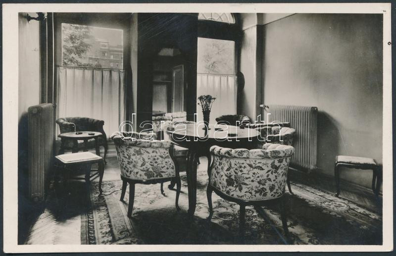 Leírás: cca 1940 Sárai: Shell palota, tisztviselői kaszinó, hölgyszalon, Bp., József nádor tér, fotólap, 9x14 cm