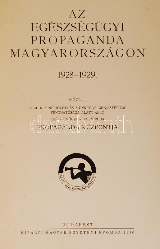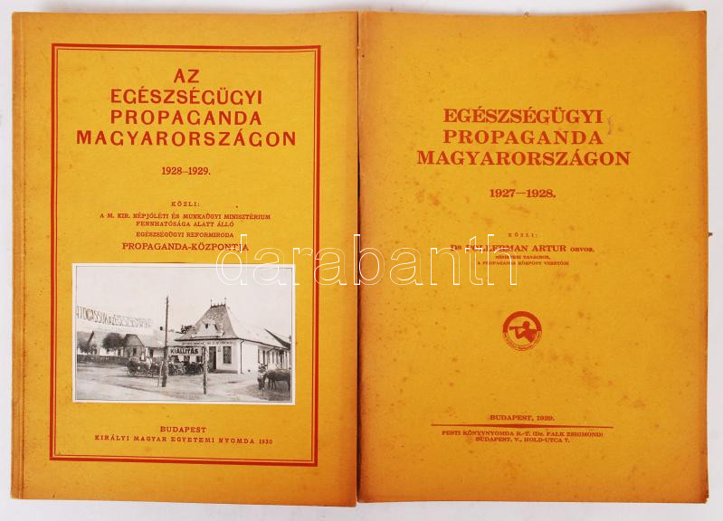 Az egészségügyi propaganda Magyarországon 1927-1929 (2 füzet). Bp., 1929-1930, Pesti Könyvnyomda, Királyi Magyar Egyetemi Nyomda. Kiadói papírkötés, kopottas állapotban.