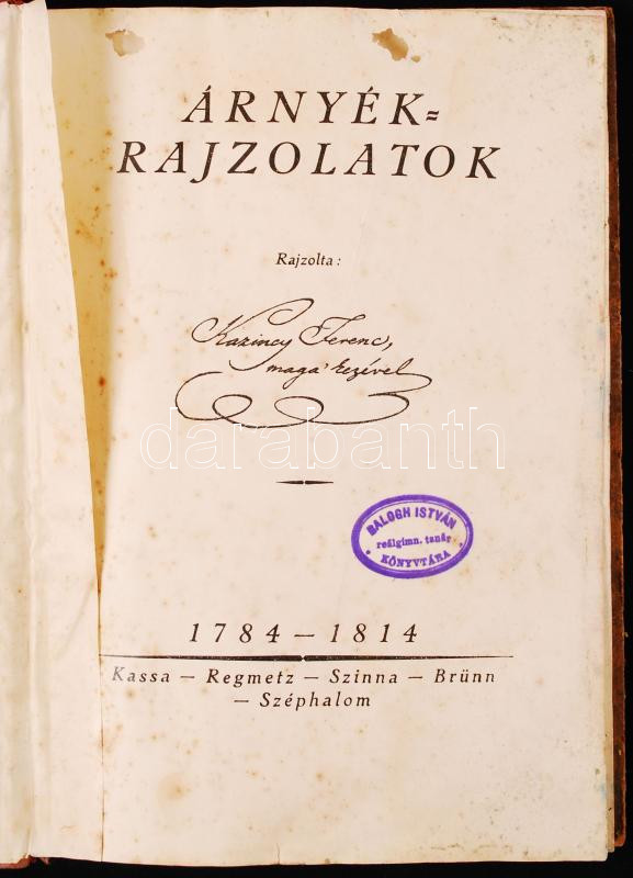 Kazinczy Ferenc: Árnyékrajzolatok. Rajzolta Kazinczy Ferenc maga' kezé... https://www.darabanth.com/hu/215-Gyorsarveres/215.0/Festmeny-mutargy-papirregiseg-egyeb/Konyvek-Egyeb-ritkasagok~37/Kazinczy-Ferenc-Arnyekrajzolatok-Rajzolta-Kazinczy-Ferenc-maga-kezevel-1784-1814-Felvaszon-~II906512