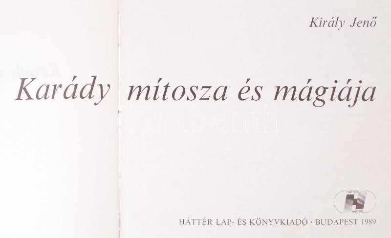 Király Jenő: Karády mítosza és mágiája. Bp., 1989, Háttér Lap- és Könyvkiadó. Kiadói kartonált kötés, gerincnél kissé kopott, fotókkal illusztrált, jó állapotban.