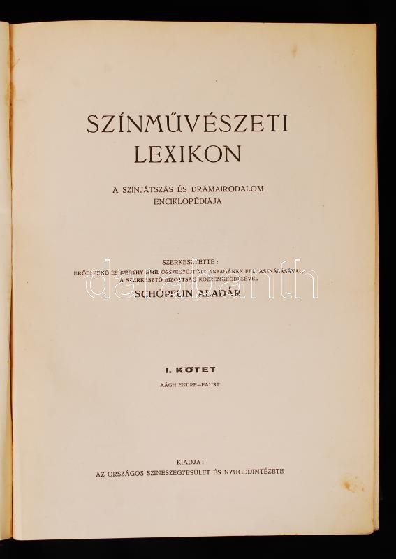 I–IV. kötet (teljes) Szerkesztette Schöpflin Aladár. Kiadja az Országos Színészegyesület és Nyugdíjintézete. Bp., 1929–1931. Thalia-Kultura Műintézet VII, 480 p.; 464 p.; 504 p; 486 p. számos színes és fekete-fehér táblával. Egységes, gerincén kissé kopott aranyozású egészvászon kötésben
