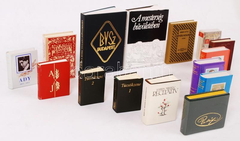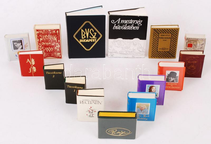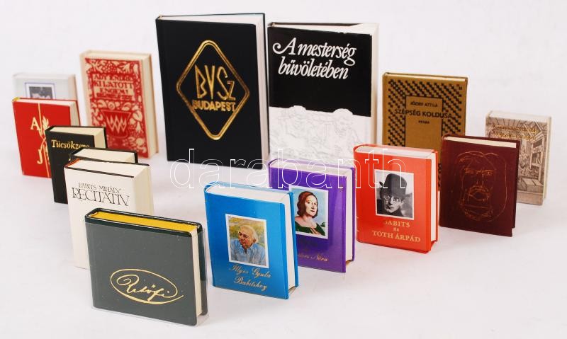 15 db minikönyv (pl. Babits és Tóth Árpád; Szabó Lőrinc: Tücsökzene; Illyés Gyula Babitshoz; Babits és Tessitori Nóra levelezése; Petősi Sándor; Katona József: Bánk bán; Babits Mihály: Recitativ stb.)