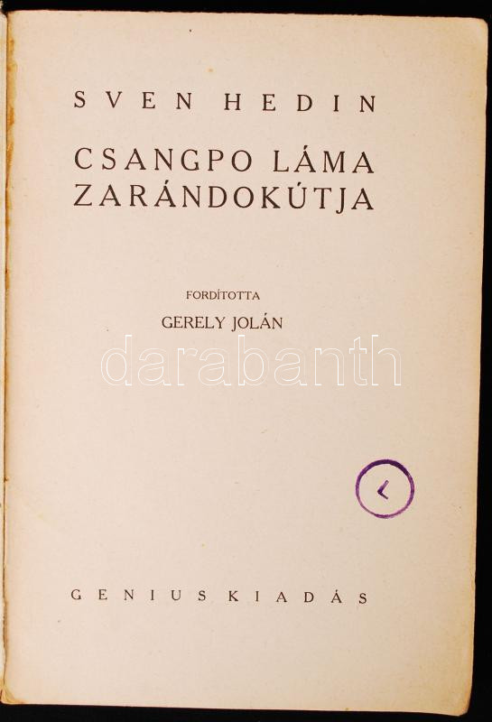 Hedin, Sven: Csangpo láma a nomádok földjén; Csangpo láma zarándokútja... https://www.darabanth.com/hu/215-Gyorsarveres/215.0/Festmeny-mutargy-papirregiseg-egyeb/Konyvek-Utazas-varosok~14/Hedin-Sven-Csangpo-lama-a-nomadok-foldjen-Csangpo-lama-zarandokutja-Bp-Genius-Kiadoi-~II906343