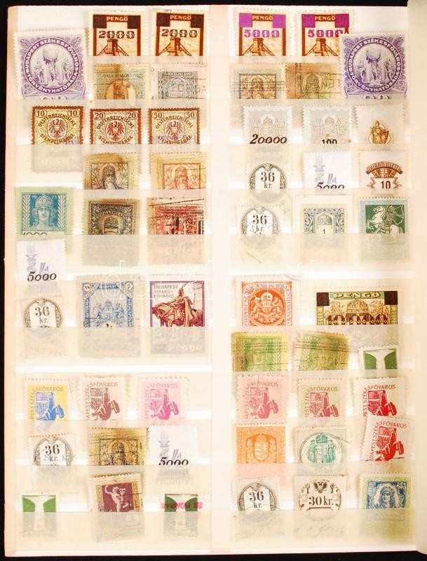 Leírás: 106 db magyar illetékbélyeg berakólapon