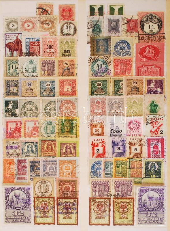 Leírás: 78 db magyar illetékbélyeg berakólapon