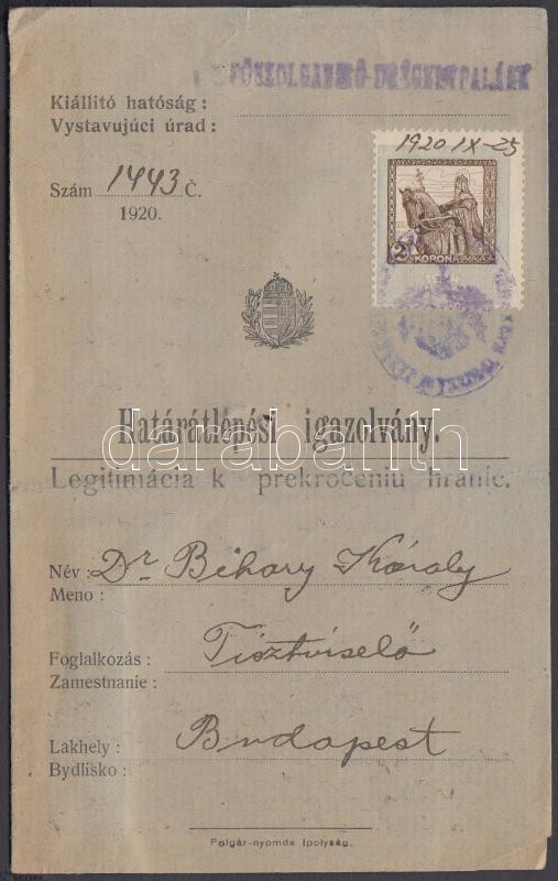 1920 Fényképes határátlépési igazolvány katona részére https://www.darabanth.com/hu/215-Gyorsarveres/215.0/Festmeny-mutargy-papirregiseg-egyeb/Okmanyok~27/1920-Fenykepes-hataratlepesi-igazolvany-katona-reszere~II903645