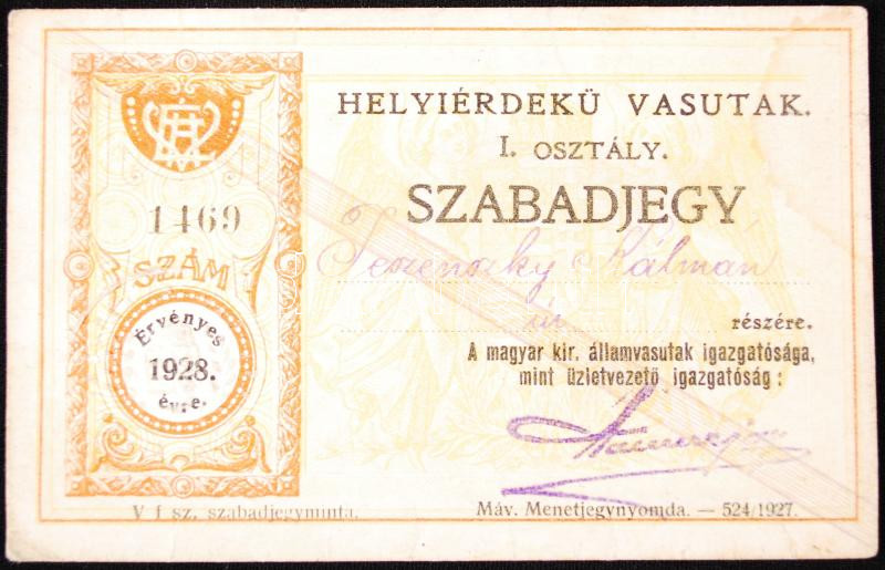 1928 HÉV személyre szóló szabadjegy https://www.darabanth.com/hu/215-Gyorsarveres/215.0/Festmeny-mutargy-papirregiseg-egyeb/Okmanyok~27/1928-HEV-szemelyre-szolo-szabadjegy~II905513