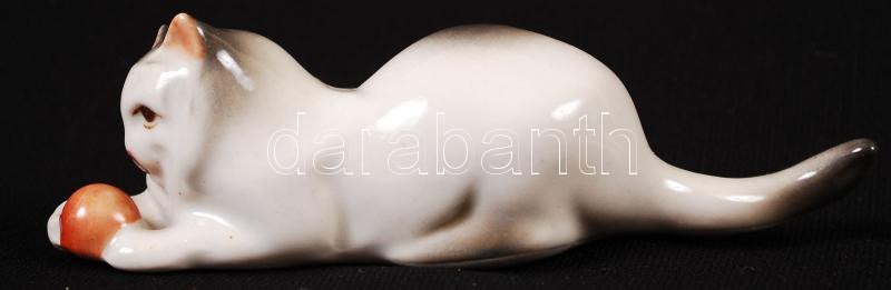 Leírás: Zsolnay gombolyaggal játszó cica, hibátlan, jelzett, h: 12 cm