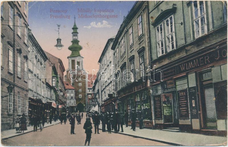 Pozsony, Mihály kapu utca, Wimmer J. üzlete / street, shop (ázott saro... https://www.darabanth.com/hu/215-Gyorsarveres/215.0/Kepeslapok/Felvidek~40007/Pozsony-Mihaly-kapu-utca-Wimmer-J-uzlete-street-shop-azott-sarok-wet-corner~II899866