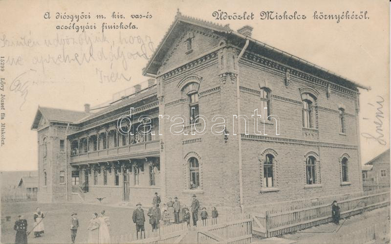 Diósgyőr, Acélgyári fiúiskola; kiadja Lővy József fia https://www.darabanth.com/hu/215-Gyorsarveres/215.0/Kepeslapok/Magyarorszag~40010/Diosgyor-Acelgyari-fiuiskola-kiadja-Lovy-Jozsef-fia~II792416