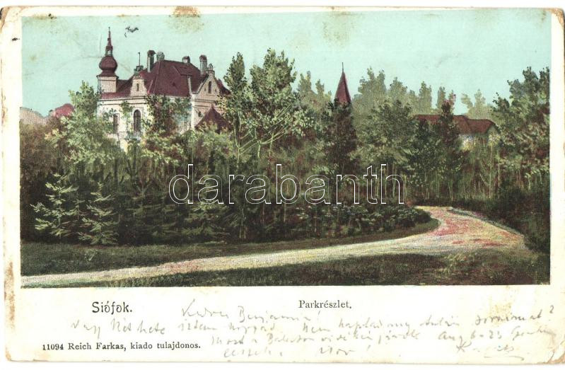 Siófok, Park; Reich Farkas kiadása (EK) https://www.darabanth.com/hu/215-Gyorsarveres/215.0/Kepeslapok/Magyarorszag~40010/Siofok-Park-Reich-Farkas-kiadasa-EK~II907174