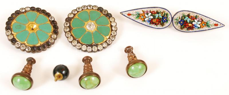 Leírás: Bizsu tétel, benne 2 db gomb (picit sérült), kitűző, medál, gombdíszek, összesen 7 db