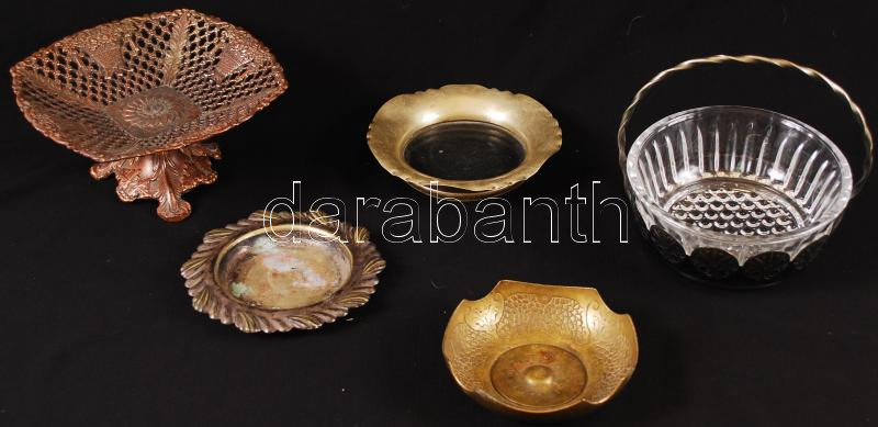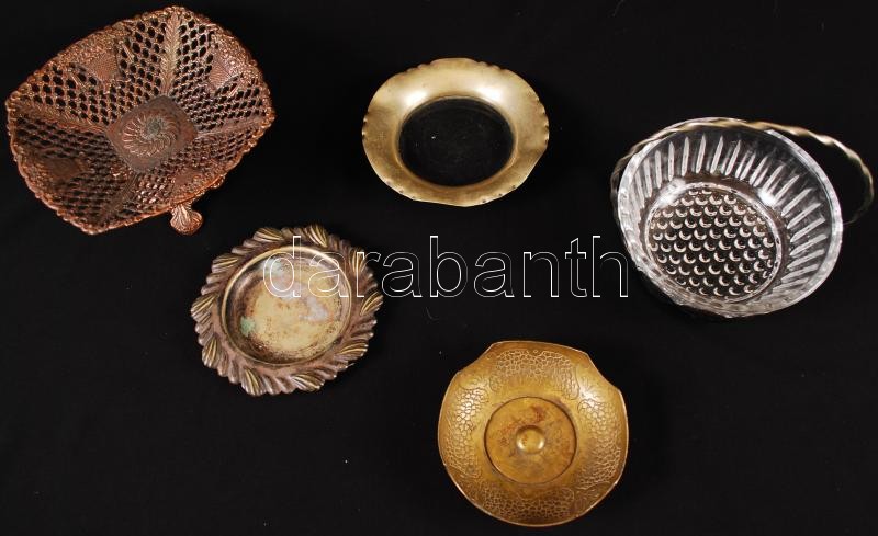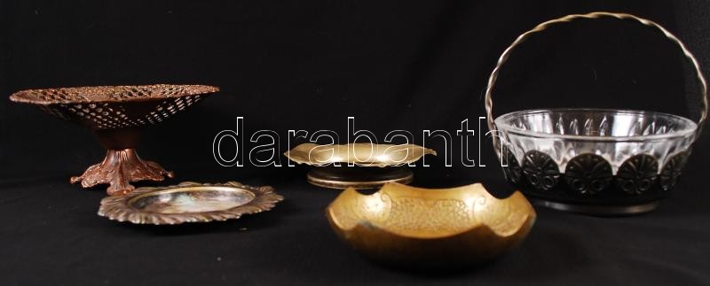 Leírás: Fém tétel: Kínáló tálak, kosarak tálkák, üvegbetéttel, hibátlanok, összesen: 5 db