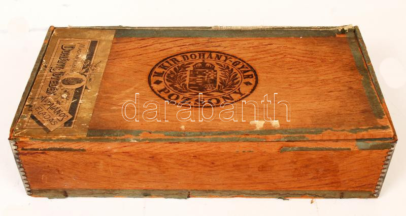 Magyar Királyi Dohánygyár Pozsony feliratú címeres régi fa doboz, 28x1... https://www.darabanth.com/hu/216-Gyorsarveres/216.0/Festmeny-mutargy-papirregiseg-egyeb/Bolhapiac~400043/Magyar-Kiralyi-Dohanygyar-Pozsony-feliratu-cimeres-regi-fa-doboz-28x14x7-cm~II912080