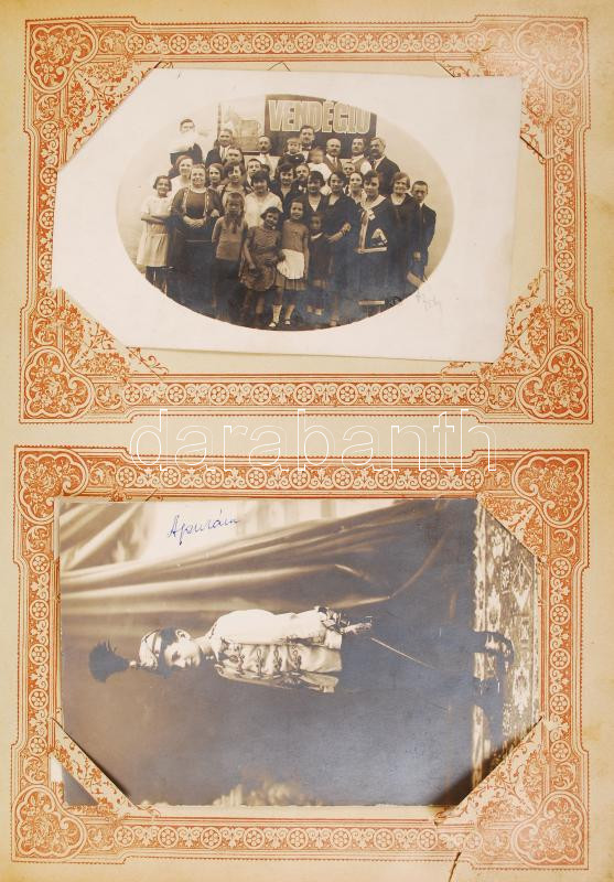 Leírás: cca 1900 Képeslap/fotóalbum 46 férőhellyel, benne néhány érdekesebb családi fotóval