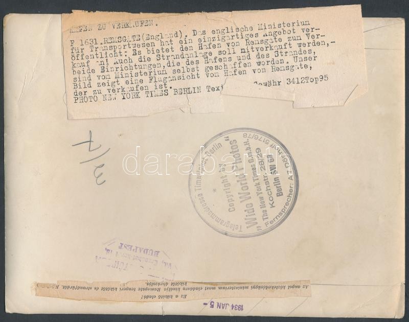 1934 Anglia, Ramsgate tengeri kikötő, pecséttel jelzett, feliratozva, ... https://www.darabanth.com/hu/216-Gyorsarveres/216.0/Festmeny-mutargy-papirregiseg-egyeb/Foto~400056/1934-Anglia-Ramsgate-tengeri-kikoto-pecsettel-jelzett-feliratozva-24x18-cm~II909134