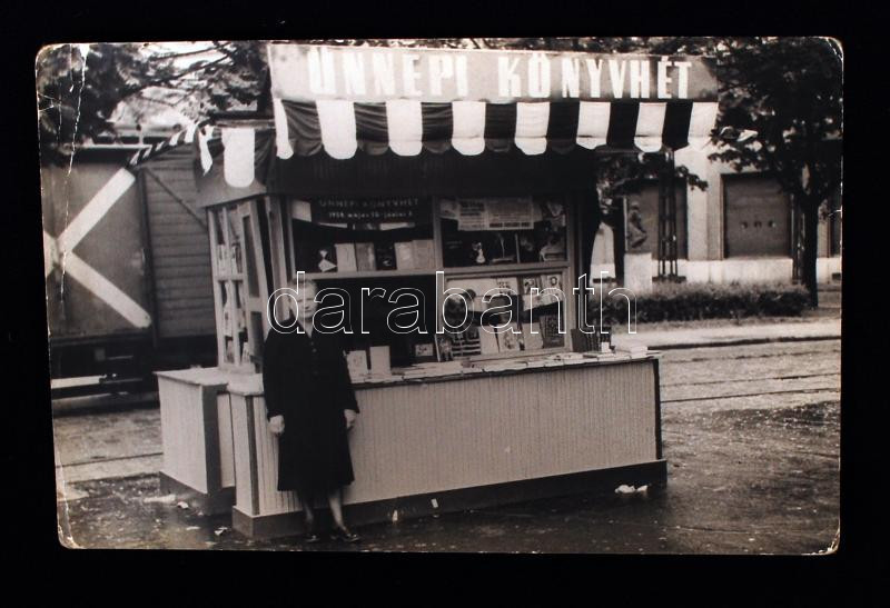 1959 Az ünnepi könyvhét, sarka törött, 14x9 cm https://www.darabanth.com/hu/216-Gyorsarveres/216.0/Festmeny-mutargy-papirregiseg-egyeb/Foto~400056/1959-Az-unnepi-konyvhet-sarka-torott-14x9-cm~II914722