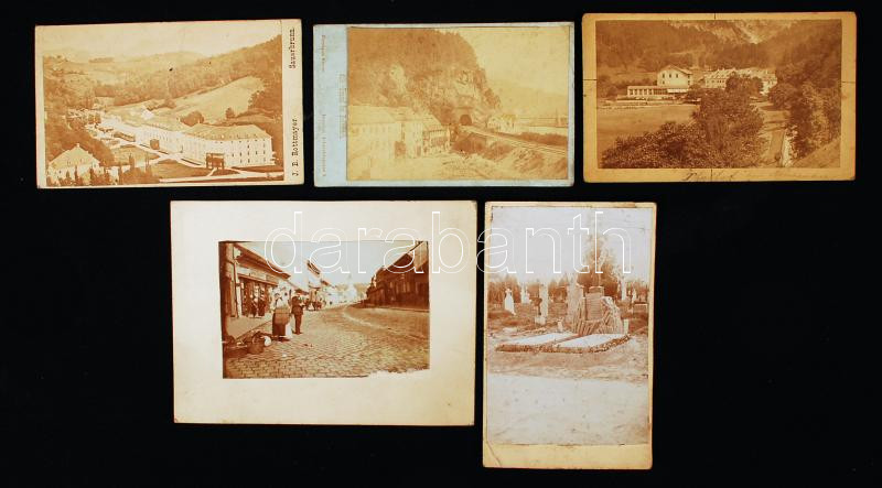 Leírás: cca 1880-1900 5 db városképes keményhátú fotó (Rohits Sauerbrunn, magyar város) / Vintage photos 7x11 cm