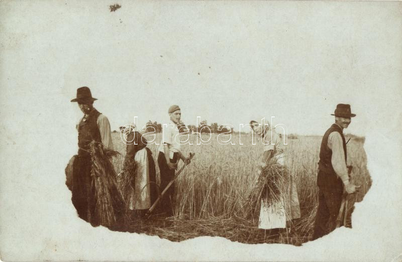 cca 1910-1920 Aratómunkások, kaszások és kéveszedők, fotólap, 9x14 cm https://www.darabanth.com/hu/216-Gyorsarveres/216.0/Festmeny-mutargy-papirregiseg-egyeb/Foto~400056/cca-1910-1920-Aratomunkasok-kaszasok-es-keveszedok-fotolap-9x14-cm~II912365