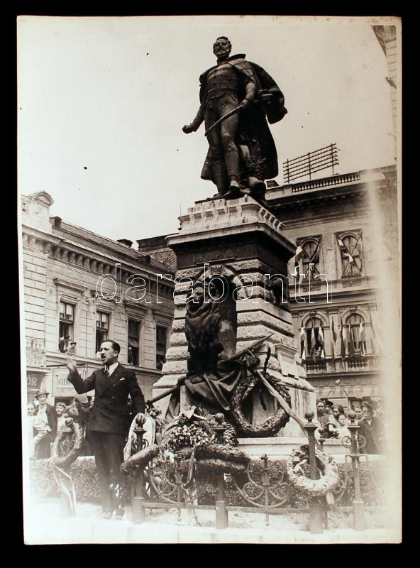 Leírás: cca 1938-1939 Komárom, Ünnepség és beszéd a Klapka szobor előtt, 17x23 cm