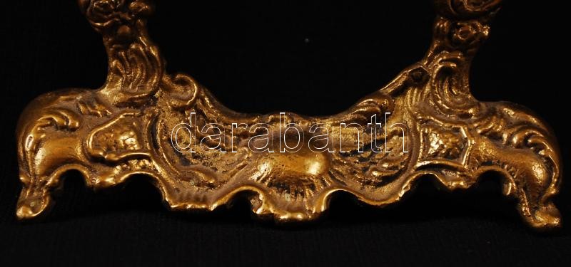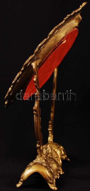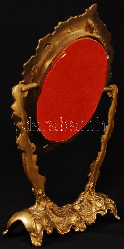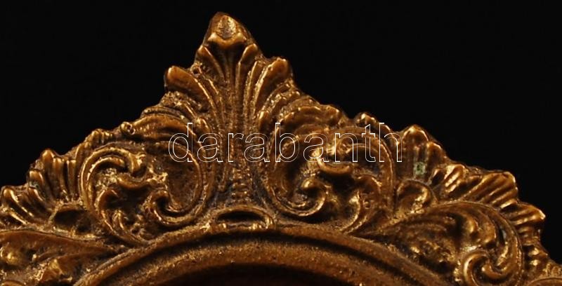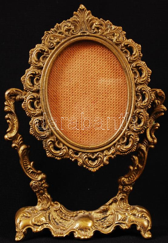 Leírás: Réz asztali ovális képkeret, eldeformált, belső:8×6 cm, 18×10 cm