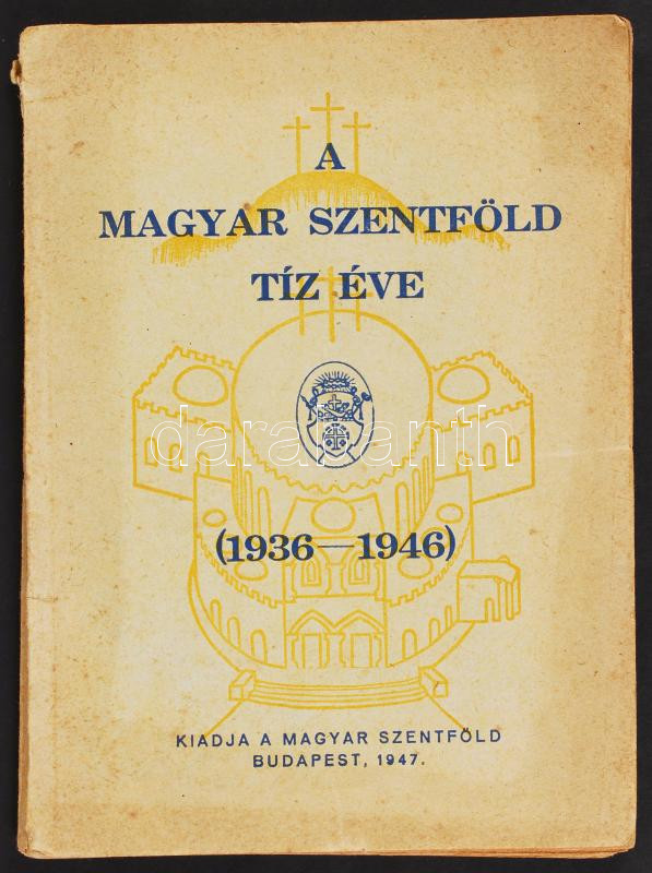A Magyar Szentföld 10 éve 1936-1946. Bp., 1947. Magyar Szentföld 127p.... https://www.darabanth.com/hu/216-Gyorsarveres/216.0/Festmeny-mutargy-papirregiseg-egyeb/Konyvek-Vallas~400046/A-Magyar-Szentfold-10-eve-1936-1946-Bp-1947-Magyar-Szentfold-127p-sok-keppel~II851567