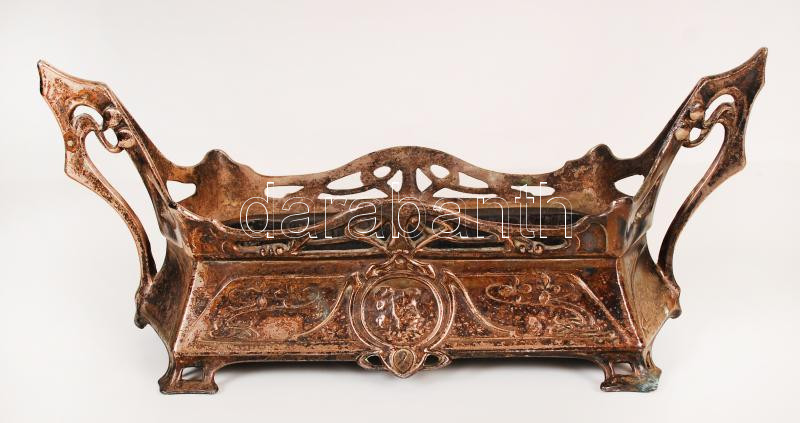 Leírás: Szecessziós asztali íróeszköz tartó, ón, jelzés nélkül, kisebb horpadással, m:11 cm, h:26 cm
