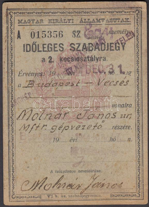 1900 MÁV ideiglenes vasúti szabadjegy https://www.darabanth.com/hu/216-Gyorsarveres/216.0/Festmeny-mutargy-papirregiseg-egyeb/Okmanyok~400053/1900-MAV-ideiglenes-vasuti-szabadjegy~II915695