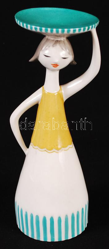 Leírás: Drasche tálhordó lány, kézzel festett porcelánfigura, hibátlan, jelzett, m: 20 cm