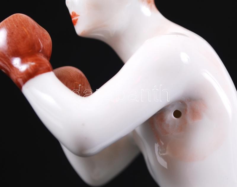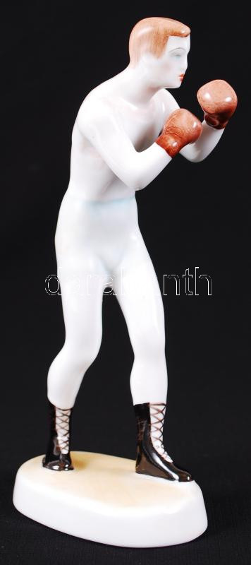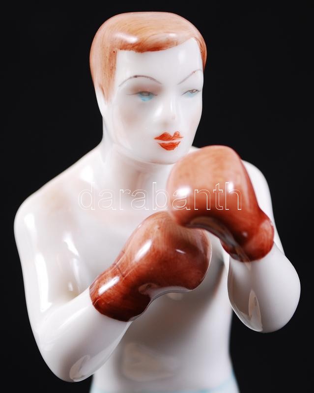 Leírás: Hollóházi bokszoló, kézzel festett, apró mázhibával, jelzett, m:19 cm