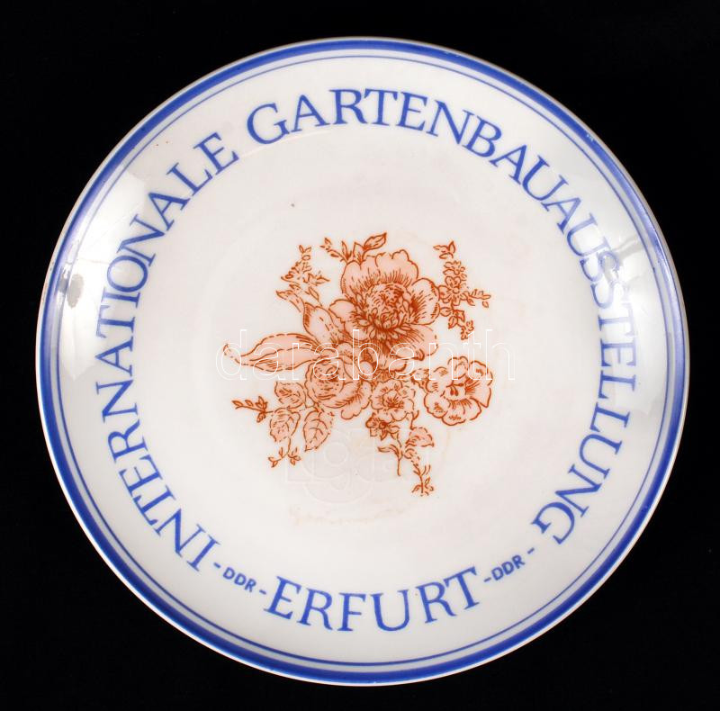 Leírás: Kahla Internationale Gartenbauaustellung Erfurt DDR feliratú porcelán tányér, hibátlan, jelzett, d: 19 cm