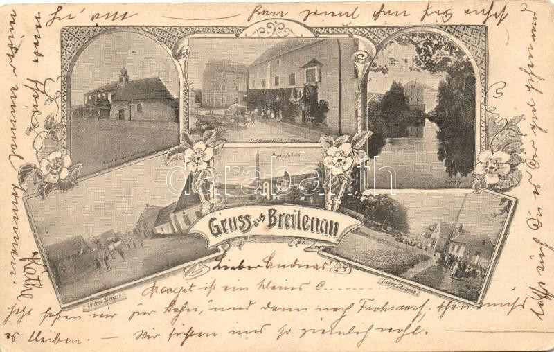 Leírás: Breitenau, Kapeller Schulhaus, Papirfabrik, Mühle, Obere und Untere Strasse / school, paper factory, mill, street Art Nouveau floral (fa)