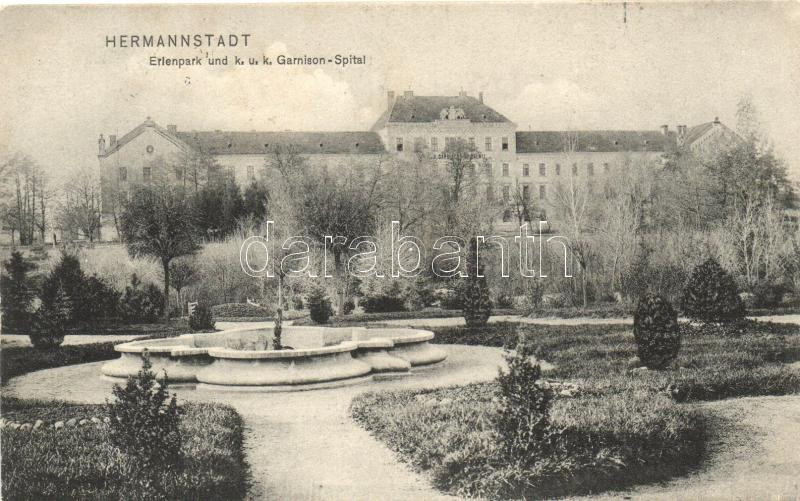 Leírás: Nagyszeben, Erlen Park, K.u.K. helyőrségi kórház / park, military hospital