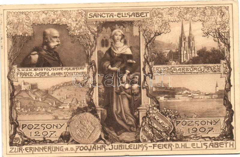 1207-1907 Pozsony, Szent Erzsébet 700 éves jubileum, Ferenc József / S... https://www.darabanth.com/hu/216-Gyorsarveres/216.0/Kepeslapok/Felvidek~400008/1207-1907-Pozsony-Szent-Erzsebet-700-eves-jubileum-Ferenc-Jozsef-Saint-Elisabeth-floral-anniv~II909680