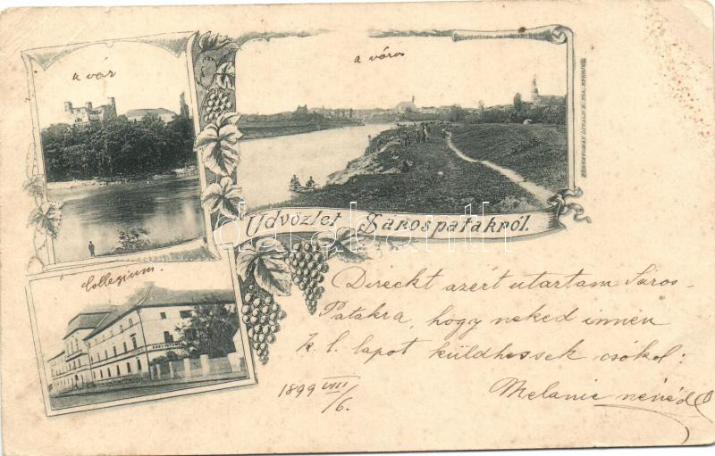 Leírás: 1899 Sárospatak, vár, Könyvnyomda, szőlő, Art Nouveau, kiadja Divald Károly fia (fa)