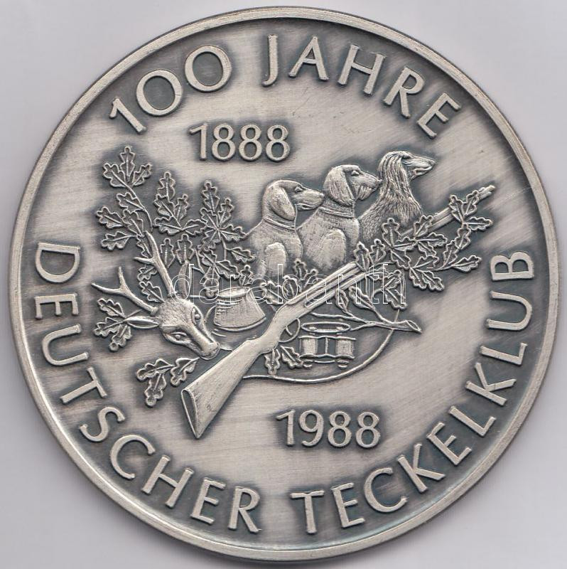 NSZK 1988. "100 éves a Német Tacskóklub / Berlin - Duisburg" ezüstözött Br emlékérem (80mm) T:2