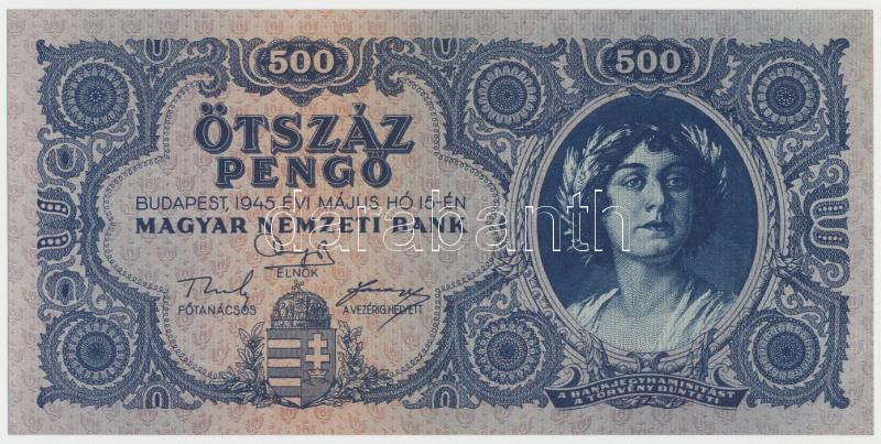 Adamo P19h https://www.darabanth.com/hu/216-Gyorsarveres/216.0/Numizmatika/Magyar-bankjegyek~100005/1945-500P-N-betuvel-TI-hajtatlan-3Cbr3EAdamo-P19h~II915312