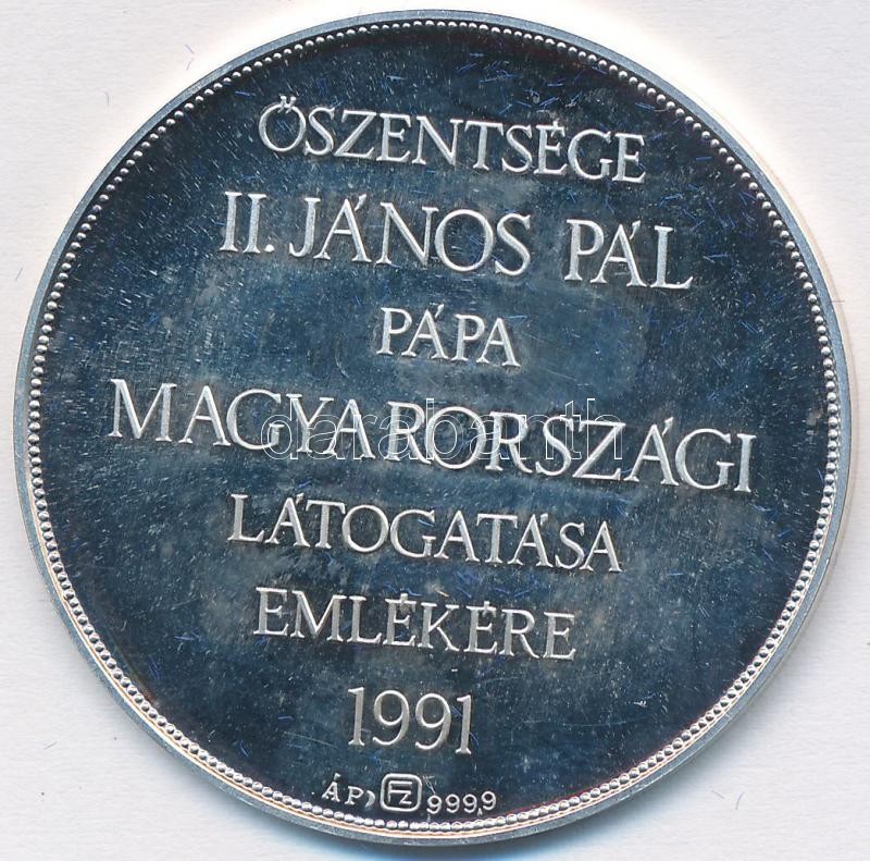 Leírás: 1991. "Őszentsége II. János Pál pápa Magyarországi Látogatása Emlékére" Ag emlékérem (15g/0.999g) T:PP dísztokban