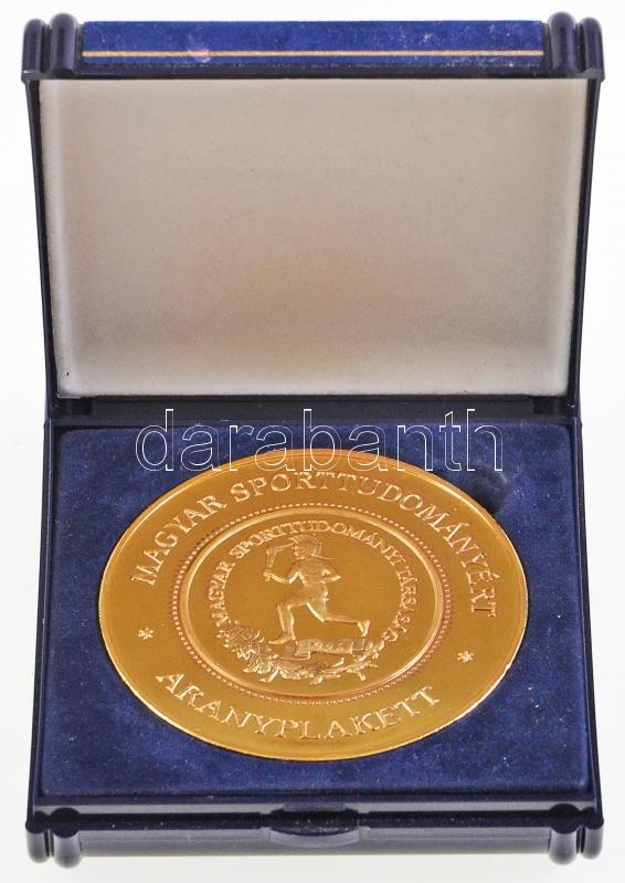 Leírás: 1996. "Magyar Sporttudományért Aranyplakett" aranyozott fém emlékérem dísztokban (70mm) T:PP