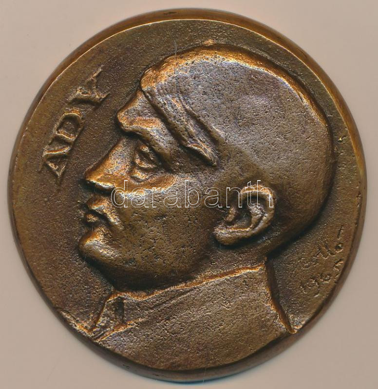 Holló 1965. "Ady" Br plakett (68mm) T:2 https://www.darabanth.com/hu/216-Gyorsarveres/216.0/Numizmatika/Magyar-emlekveretek~100007/Hollo-1965-Ady-Br-plakett-68mm-T2~II916784