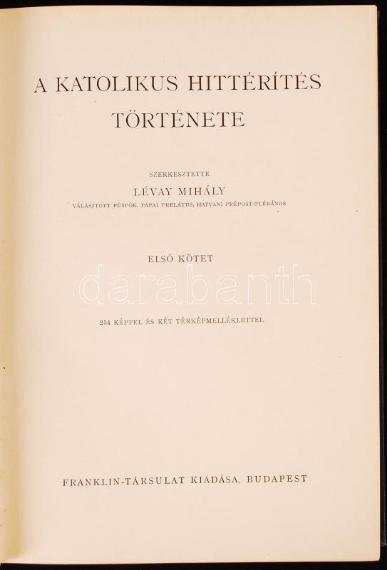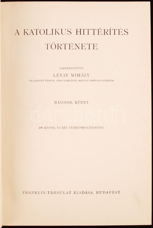 Lévay Mihály: A katolikus hittérítés története I-II. Bp., 1937, Franklin. Kiadói aranyozott egészvászon kötés, gerincnél kissé kopott, egyébként jó állapotban.
