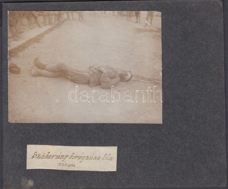 Leírás: cca 1914-1918 Katona szökevény kivégzése Slamicon, kartonra ragasztott fénykép, 8x10,5 cm