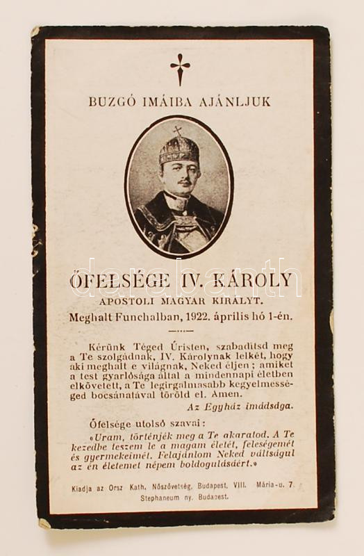 1922 IV. Károly gyászhíres szentkép https://www.darabanth.com/hu/217-Gyorsarveres/217.0/Festmeny-mutargy-papirregiseg-egyeb/Nyomtatvanyok~12/1922-IV-Karoly-gyaszhires-szentkep~II918015