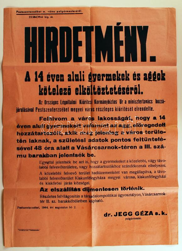 1944 Pesterzsébet légoltalmi hirdetmény 40x60 cm https://www.darabanth.com/hu/217-Gyorsarveres/217.0/Festmeny-mutargy-papirregiseg-egyeb/Nyomtatvanyok~12/1944-Pesterzsebet-legoltalmi-hirdetmeny-40x60-cm~II924977