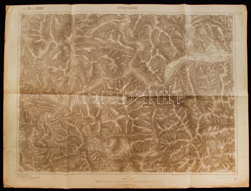 1915 Katonai térkép, Gyergyóbékás, K.u.k. Militärgeographisches Institut, 1:75000, 51×38 cm /