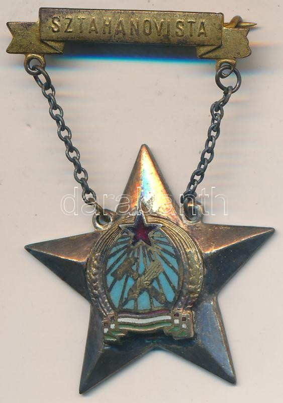 Leírás: ~1950. "Sztahanovista" zománcozott kitüntetés tokban T:2-