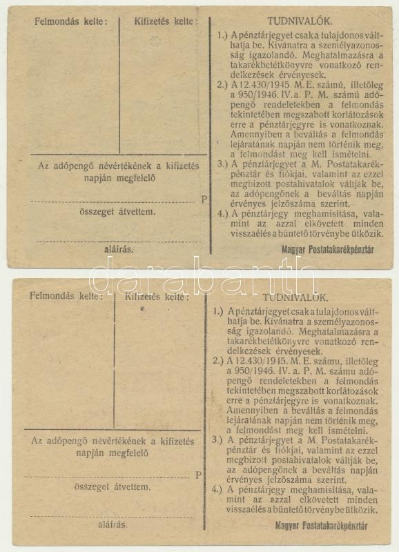 Leírás: 1946. 100.000AP nem kamatozó Pénztárjegy "Másra Át Nem Ruházható" + 1.000.000AP nem kamatozó Pénztárjegy "Másra Át Nem Ruházható" T:III