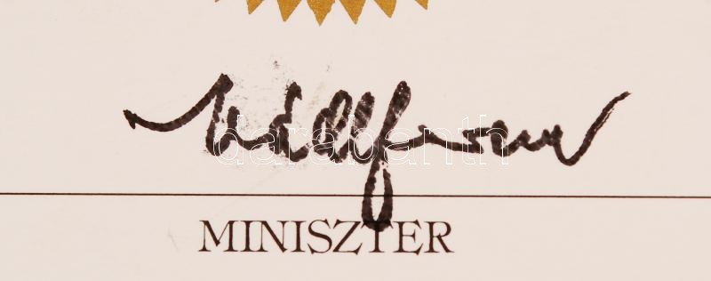 Leírás: cca 1993-1994 Mádl Ferenc aláírása emlékérem-adományozó oklevélen.