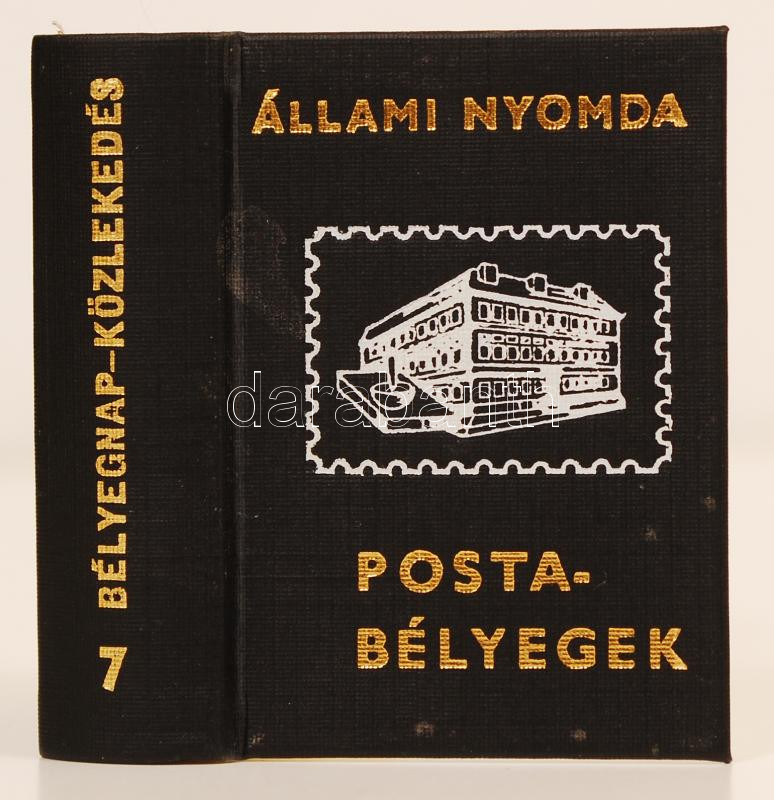Leírás: Magyar postabélyegek 1947-1986. 7. köt.: Bélyegnap Bélyegkiállítás; Közlekedés a bélyegen. Szerk.: Jáni István. Bp., 1986, Állami Nyomda - Magyar Posta. Minikönyv, 197. számozott példány, készült 300 példányban. Aranyozott vászonkötésben, jó állapotban.